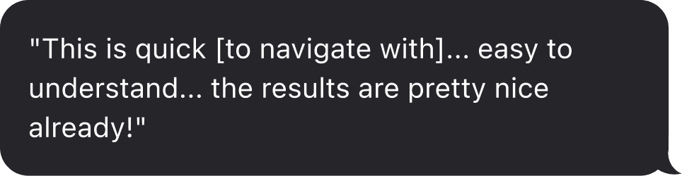 Despite all this, we ran three user testing sessions—with Singapore Police, HUK-COBURG and a Sr. Customer Success Manager. Here’s what they had to say: