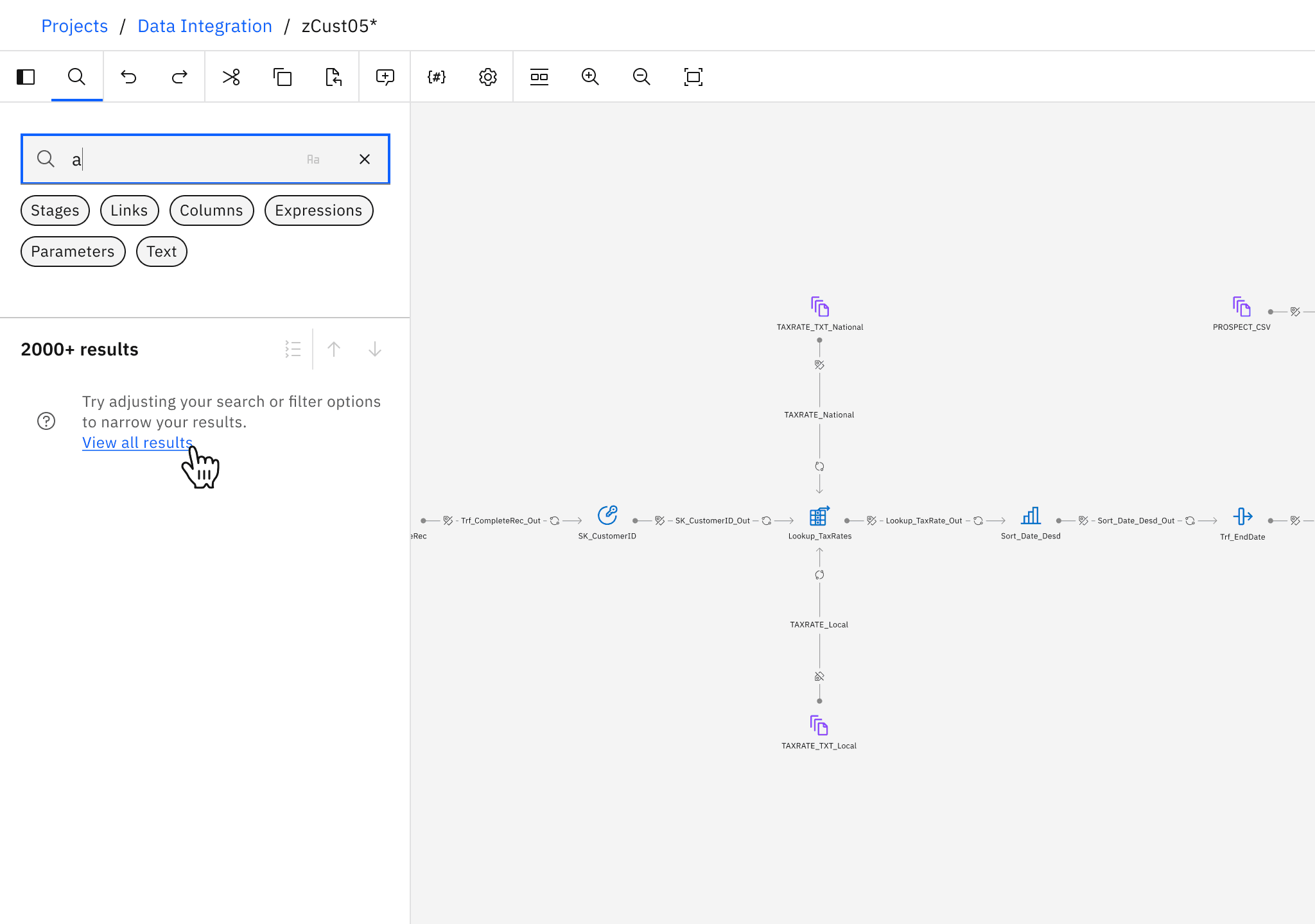 Canvas Find became one of DataStage's most frequently used features, replacing manual scrolling with instant filtering.